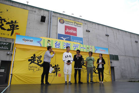 「台灣日(台湾デー)」活動,於阪神甲子園球場登場,活動邀請了《KANO》製片人魏德聖、片中飾演教練角色的永瀨正敏及飾演劉蒼麟的陳永欣出席(台灣虎航提供)