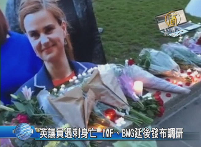 【新唐人亞太台 2016 年 06 月 17 日訊】距離英國脫歐公投剩不到一周時間,英國研究機構BMG原定17日要公布一份備受矚目的民調結果,但因為親歐派議員柯克斯遇刺身亡,決定延後發布;國際貨幣基金(IMF)原本要公布的一項英國脫歐經濟影響報告,也因同樣的理由,延後24小時公布。IMF表示,這是出於對發生在英國的悲劇事件的致意,同時也取得英國政府的同意。