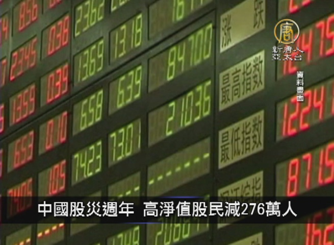 【新唐人亞太台 2016 年 06 月 18 日訊】中國股災週年 高淨值股民減276萬人