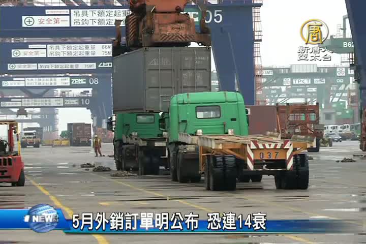 【新唐人亞太台 2016 年 06 月 19 日訊】經濟部明天將公布5月外銷訂單統計數據,估計,可能會陷入連14黑的困境,再刷新金融海嘯時的連12個月衰退紀錄,金額約年減7%到8%。年增率想轉正,恐怕要等到下半年了。