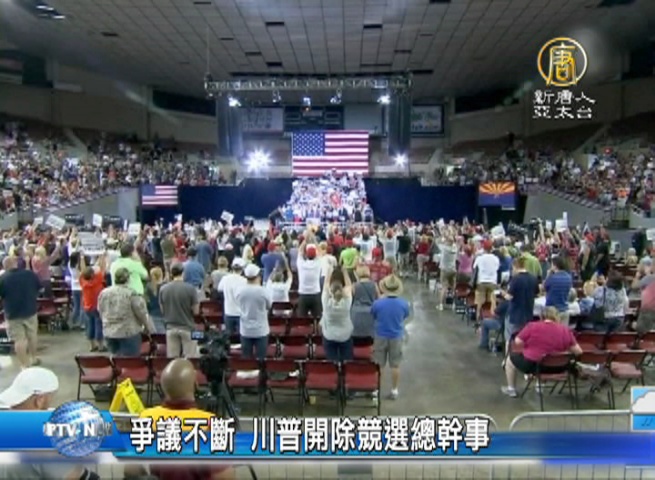 【新唐人亞太台 2016 年 06 月 21 日訊】再來關心美國總統大選,共和黨總統候選人川普順利成為準提名人,不過周一卻發生他參選以來,競選團隊最重大的人事變革。他撤換了對他助選有功的競選總幹事李萬度斯基。美國媒體說,主要原因是李萬度斯基得罪了太多的記者。