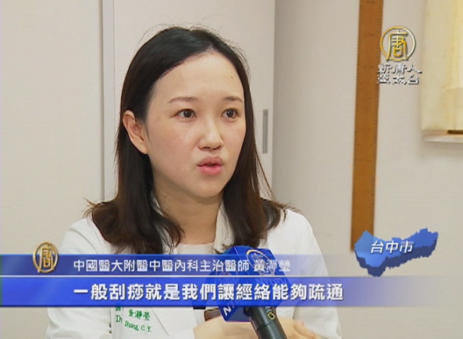 中國醫大附醫中醫內科主治醫師 黃?瑩:「一般刮痧就是我們要讓經絡能夠疏通,經絡疏通後,剛剛講的這個身體的散熱途徑自然就能打開,打開之後這個熱有一個出入身體就能夠舒服一點。」