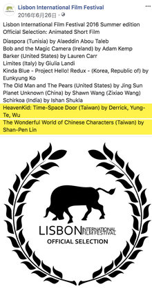 【新唐人亞太台 2016 年 06 月 23 日訊】新唐人動畫《悠遊字在》、《天庭小子-小乾坤》捷報不斷,雙雙入圍葡萄牙里斯本國際影展(Lisbon International Film Festival 2016, Summer edition),6月底將與多國角逐 「最佳動畫短片」。