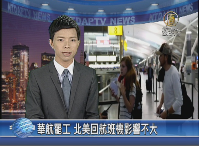 記者 李大宇:這裡是台灣中華航空位於紐約甘迺迪國際機場的服務台,從台灣當地時間24號0點整開始,華航空服員發起了大罷工,使欲從台灣當地起飛的至少67架航班受到影響,但是在紐約返航的班次並未受到波及。而且本次事件是台灣史上空服業的首次罷工。