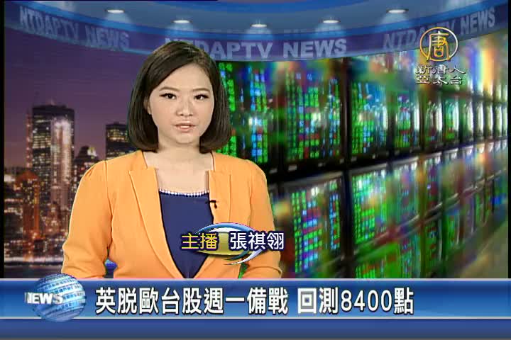 【新唐人亞太台 2016 年 06 月 27 日訊】新聞一開始,先來帶您關心,受到英國公投選擇脫歐的影響,歐美股市上周五全面暴跌,市場今天一早,就警戒觀察亞洲金融市場表現,台灣股市今早低開低走,一度失守8,400點,盤中漸擺脫英國脫歐陰霾,收復8400點大關。