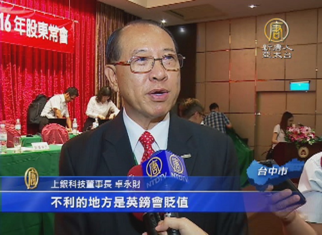【新唐人亞太台 2016 年 06 月 28 日訊】上銀科技股東會今天(28日)在台中舉行,董事長卓永財表示,英國製造業比重持續下降,而脫歐影響英鎊貶值,整體而言對公司是利大於弊。並看好大型工具機下半年的成長。