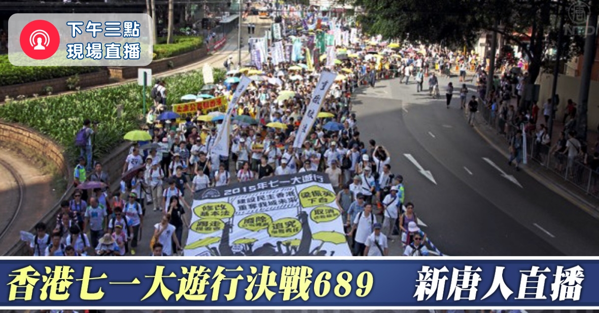【新唐人亞太台 2016 年 07 月 01 日訊】七一大遊行是香港主權移交以來最大的民主抗爭行動之一,今年遊行將於7月1日(週五)下午三點開始,遊行從銅鑼灣維多利亞公園出發,沿途經怡和街、軒尼詩道和金鐘道,終點是夏慤道。新唐人亞太台網站將於北京時間下午三點開始,全程轉播此次遊行,敬請鎖定。