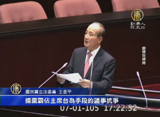【新唐人亞太台 2016 年 07 月 01 日訊】前立法院長王金平,首度打破慣例,壓軸上台質詢,不過他並未當場質詢林全,而是以讀稿的方式,講滿30分鐘,再請行政院書面答覆。王金平從兩岸事務爭議,講到國、民兩黨,應該停止藍綠惡鬥。