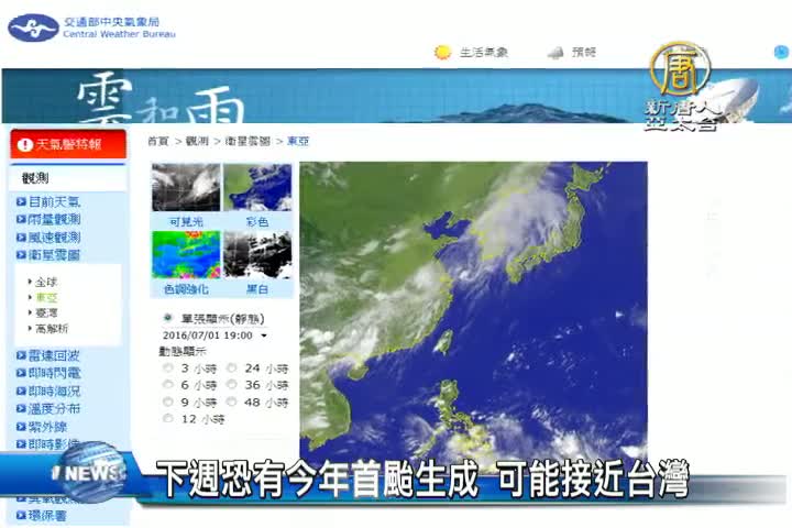 【新唐人亞太台 2016 年 07 月 01 日訊】已經進入7月,今年卻還沒有颱風生成。不過,根據歐洲中期預報中心與美國氣象局超級電腦的最新預測,下星期可能會有颱風形成,並且靠近台灣。如果預測準確,將是今年西北太平洋,生成的第一個颱風。歐洲和美國的預測都指出,目前在菲律賓東方有一大團雲系,如果發展順利,很可能會形成颱風,不過還要持續密切觀察。