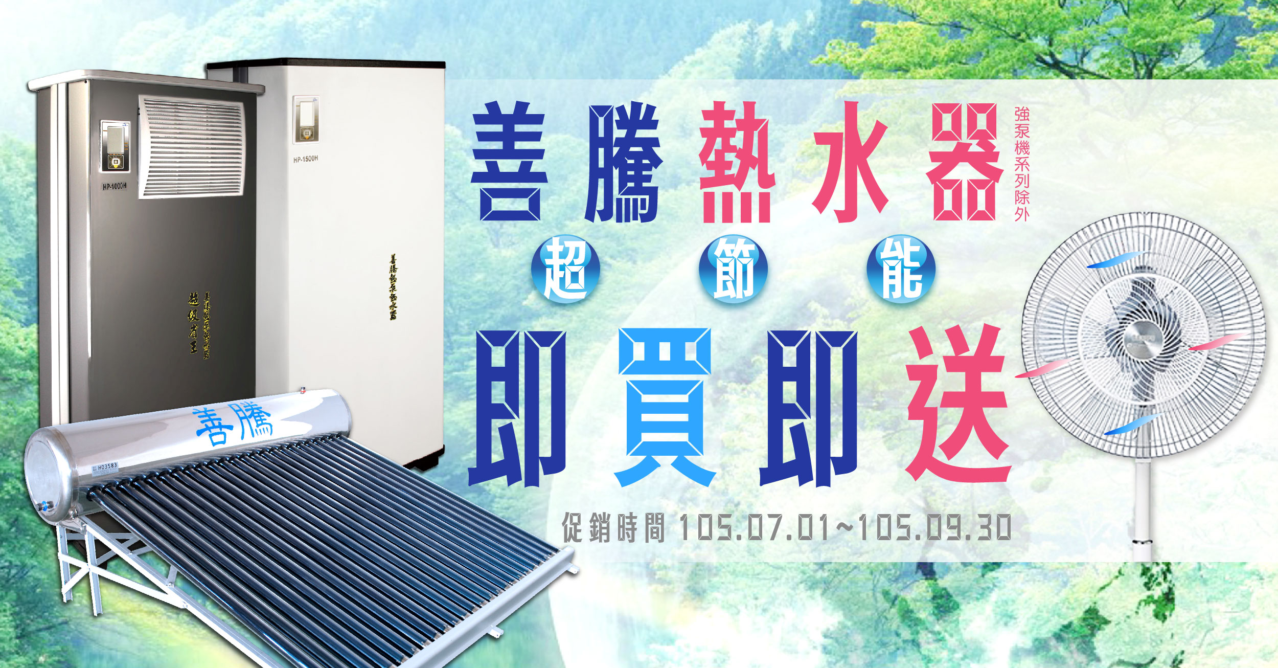 節能減碳好夥伴 購買善騰熱水器即送節能風扇