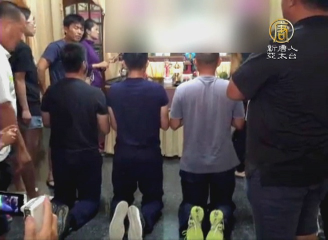 【新唐人亞太台 2016 年 07 月 04 日訊】再來看到,昨天(7月3日)傍晚,由艦長林伯澤帶領3名涉案官兵,前往船長靈前上香,被死者家屬阻擋,後來在家屬要求下,4名官兵跪著爬進靈堂,向船長磕頭, 4名官兵,整整跪了40幾分鐘。