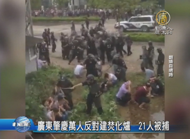 【新唐人亞太台 2016 年 07 月 05 日訊】中國再次爆發抗議興建焚化爐所引起的大規模抗爭!廣東肇慶市民,因為反對興建焚燒廠,萬人自發號召上街表達不滿。不過,遭到警方武力鎮壓,觸目驚心的打人影像,震驚外界。昨天(4日),有大約2千民眾在鎮政府前聚集,官方公布有21人在事件中被捕。