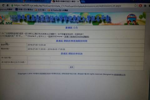 嘉義區高中免試入學放榜,考生可透過嘉義區免試入學委員會網站查詢榜單。(圖/翻攝自嘉義區免試入學委員會網站)