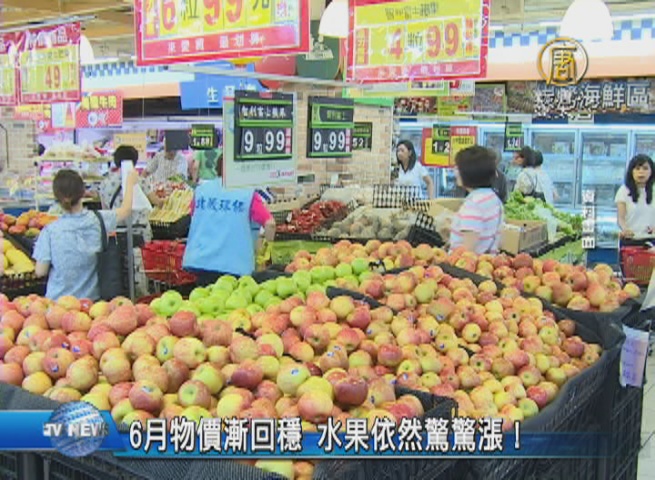 【新唐人亞太台 2016 年 07 月 05 日訊】行政院主計總處今日上午發布6月物價調查報告,6月消費者物價指數(CPI)年增率 降至0.9%,創下近5個月最小。主計總處表示,與去年同月相比,燃氣與電費價格都下跌超過10%,綜合食物、電價、油價及燃氣後的物價年增率,創下近5個月最小,顯示國內物價已回到平穩狀態,不過,受天候影響,水果的價格,漲幅達35.8%,創下10年7個月以來最高。