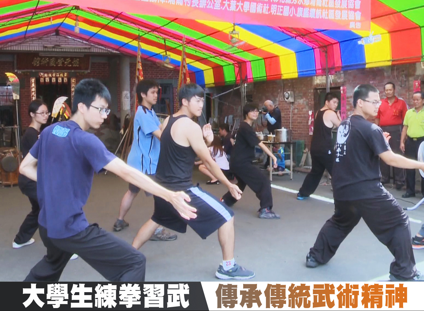 隨著師傅習武練拳,動作有模有樣,武術營大學生不畏辛苦,連續3年學習拳法套路,兵器對打,手腳虎虎生風。