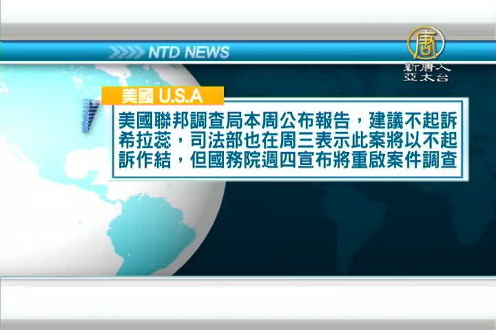 美國聯邦調查局本周公布報告,建議不起訴希拉蕊,司法部也在周三表示此案將以不起訴作結,但國務院週四宣布將重啟案件調查。