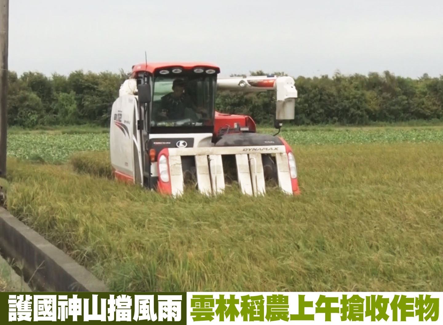 雲林一期稻作雖然進入尾聲,但海線還有許多稻子還沒有收割,農民聽到強颱尼伯特從台東登陸,從昨晚開始連夜搶收,一口氣派出四台割稻機,不到十五分鐘,三分地的稻子收割完畢。