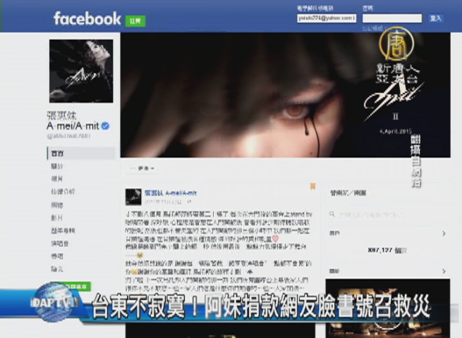 台東不寂寞!阿妹捐款網友臉書號召救災