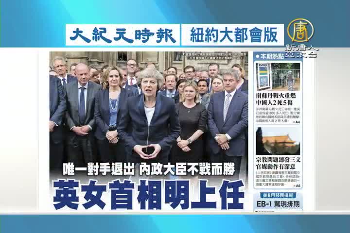 【新唐人亞太台 2016 年 07 月 12 日訊】首先來看到美國華盛頓郵報報導:對手退選,英國內政大臣梅伊將成為英國首相