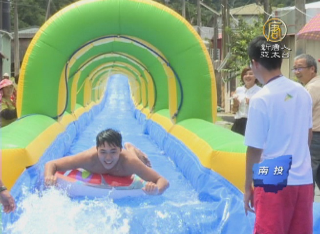 【新唐人亞太台 2016 年 07 月 14 日訊】又到了葡萄採收的季節,「南投信義葡萄滑水節」活動起跑,信義鄉公所斥資500萬,打造了一座長700公尺,號稱全亞洲最長的滑水道設施,希望在炎炎夏日,吸引更多遊客前來觀光旅遊。