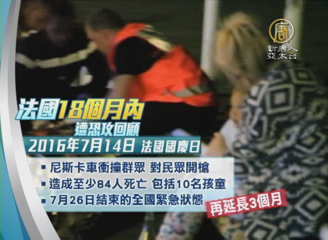 【新唐人亞太台 2016 年 07 月 15 日訊】法國國慶日當天發生卡車蓄意衝撞人群事件,已經造成至少84人死亡,法國當局又宣布延長緊急狀態,而在過去18個月內,法國就經歷了至少三次大規模恐怖攻擊事件