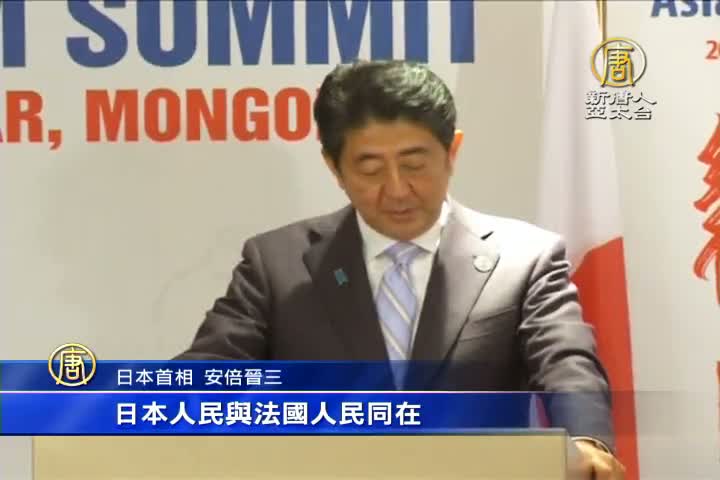 日本首相 安倍晉三:「日本與法國團結在一起,在危機的時刻,我們享有同樣的基本價值。日本人民與法國人民同在。」