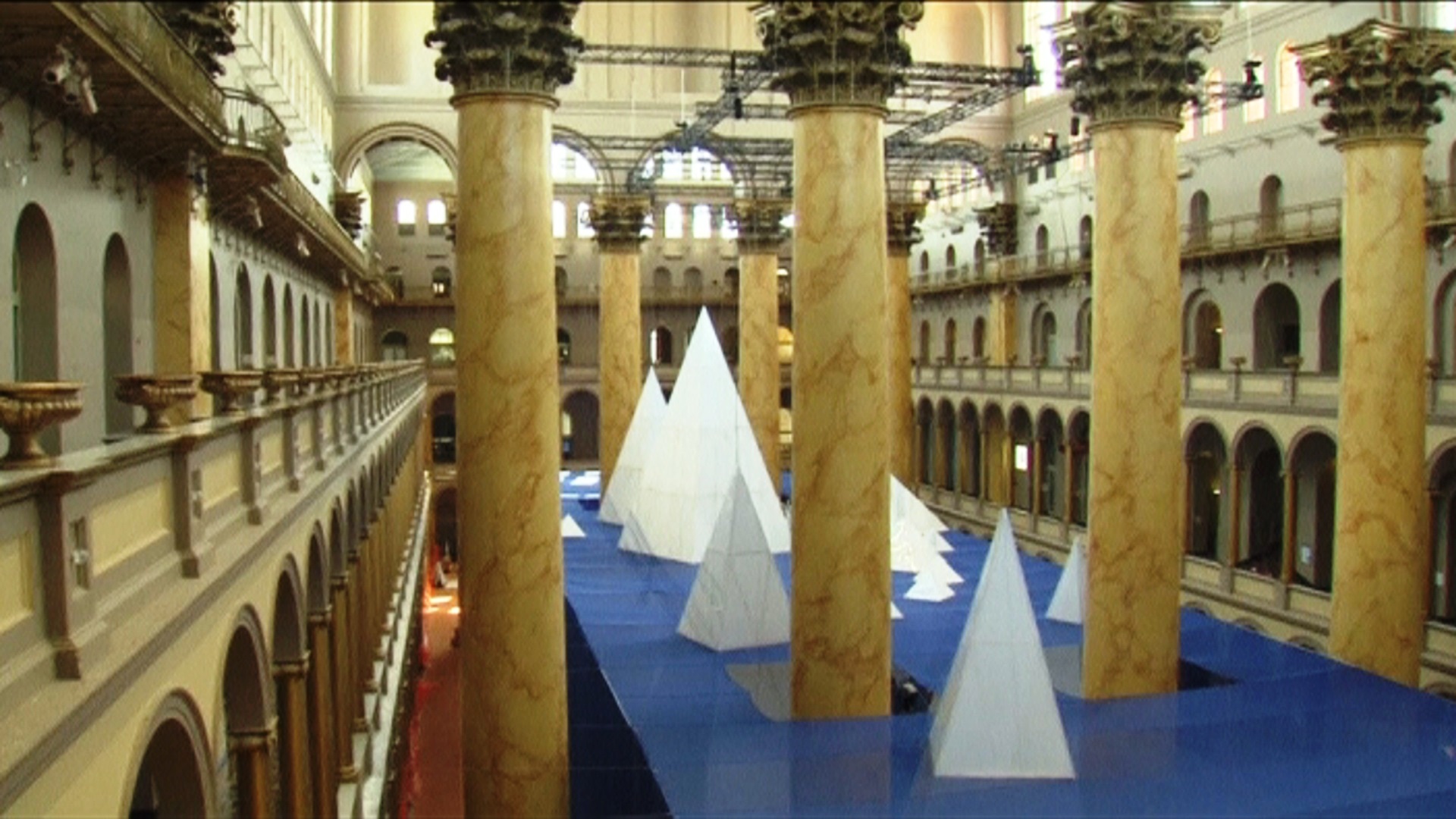 走進充滿古典藝術風格的博物館大廳,會赫然看到許多風格迥異的白色角椎柱體。這是美國華府的建築博物館在盛夏時節特別舉辦的冰山展,雖然是抽象的建物,但卻充分的展現冰山完整的結構。