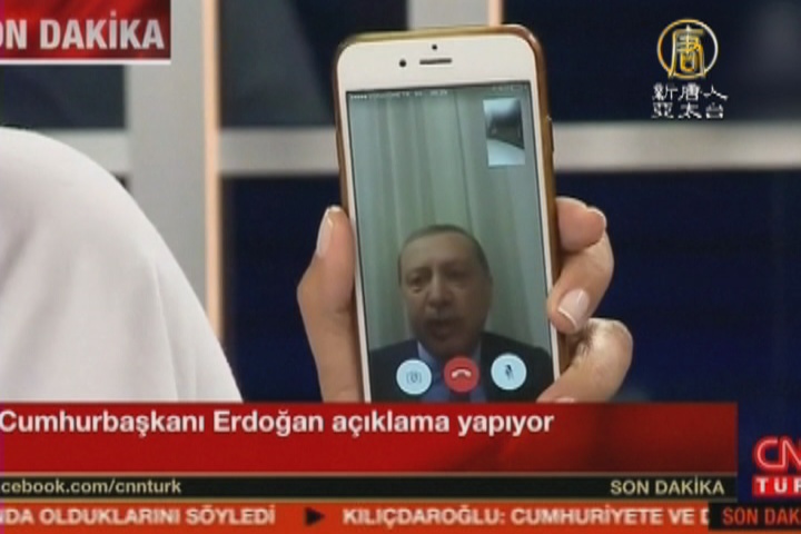 土耳其總統塔伊普·埃爾多安(Tayyip Erdogan )曾通過FaceTime手機視頻,由CNN在當地的姐妹台,向全國發表講話,表示要戰勝政變,他呼籲民眾走上街頭,表達對政府的支持。