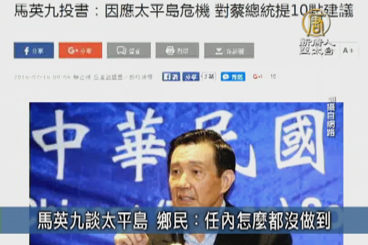 南海仲裁將我國太平島降格成「岩礁」,引起國內輿論譁然,總統蔡英文則強調不會接受仲裁結果。而前總統馬英九近來頻頻對此發表意見,不僅投書媒體提出10點建議,又在臉書上呼籲朝野要同心協力。只是馬英九諸多言論卻遭到 PTT鄉民紛紛噓翻,直呼他怎麼都沒在自己8年任內做到。