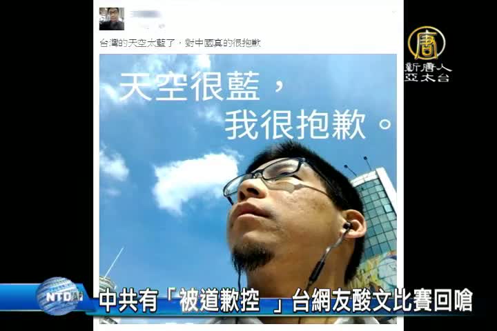 【新唐人亞太台 2016 年 07 月 17 日訊】藝人戴立忍「被道歉」風波,引發輿論譁然,後來,有社運人士在臉書上發起「第一屆向中國道歉大賽」,諷刺中共「脆弱玻璃心」,不斷操弄網軍要人道歉。有人發文說「天空很藍,我很抱歉」「我用google自由搜尋,我很抱歉」「我的鍵盤上有6跟4,我很抱歉」,不過,也有網友一語中的 說,「這世界最珍貴的道歉是,中國當局為錯誤的決策,對中國人的道歉。」
