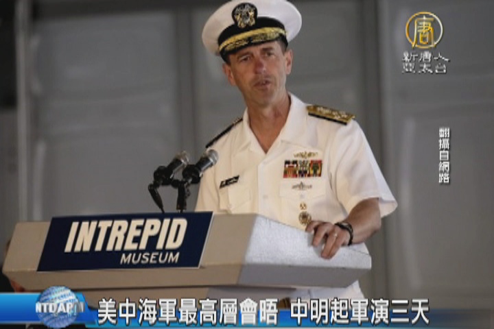【新唐人亞太台 2016 年 07 月 18 日訊】南海仲裁結果出爐,引發中國強烈不滿。中國海事局網站今天(18日)宣布,繼日前在南海舉行軍事演習後,明天起又將連續3天,在南海展開軍事活動,禁止船隻駛入。而另一方面,為解決爭端,美國海軍作戰部長李察森昨天訪問中國,與共軍海軍司令員吳勝利會晤。