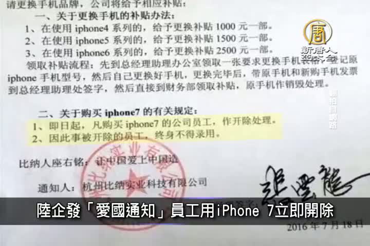 陸企員工「用iPhone 7立即開除」|中國一分鐘