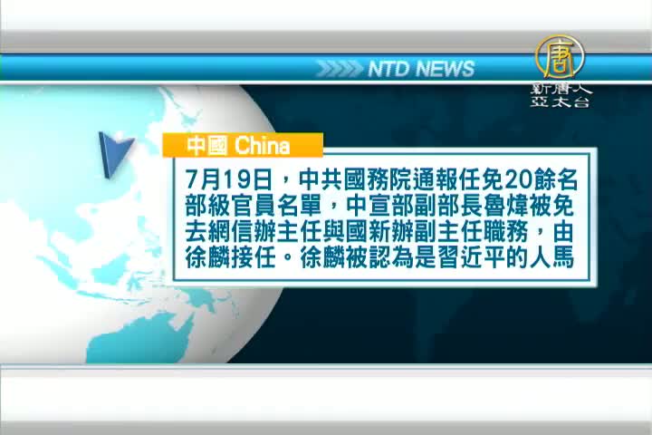 7月19日,中共國務院通報任免20餘名部級官員名單,中宣部副部長魯煒被免去網信辦主任與國新辦副主任職務,由徐麟接任。徐麟被認為是習近平的人馬。