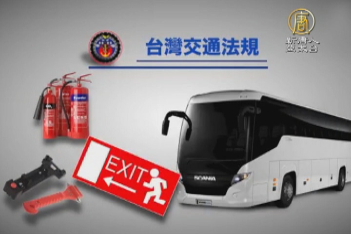根據台灣的交通法規規定,遊覽車上必須設有滅火器、車窗擊破器,和逃生用的緊急出口,滅火器通常有兩具,放在駕駛座後方與車身的後段,發生火災時可以立即用來滅火。