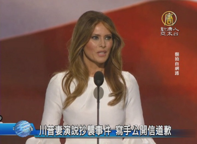 【新唐人亞太台 2016 年 07 月 21 日訊】美國共和黨候選人川普的妻子梅蘭妮亞,日前在共和黨全代會發表演說被控抄襲,引起爭議,川普的競選助理曼納福特 事後接受媒體採訪時否認抄襲,還表示這場演說相當成功。不過,週三,曾經為川普寫過幾本書的作家,在川普的競選網站上發布公開信,信中她承認錯誤,並且為此道歉。