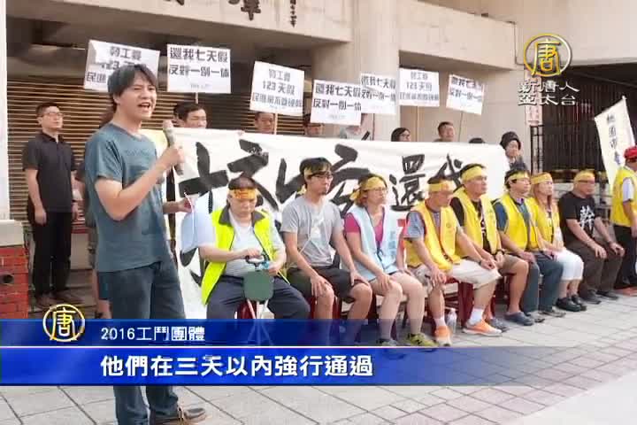 2016工鬥團體:「還我7天假! 民進黨出來! 還我7天假!」