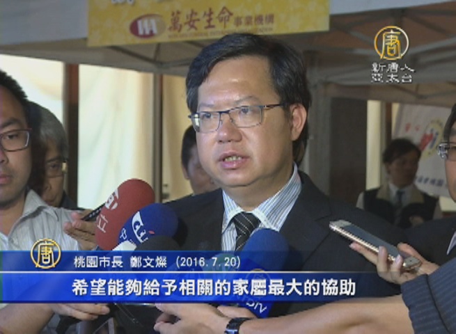 2016-07-21 00:28:41桃園市長 鄭文燦:這是一個非常重大的車禍,市府已在中壢殯儀館成立「0719重大交通事故辦公室」及「桃園機場前進辦公室」,包含中央及地方政府都派員進駐「0719重大交通事故辦公室」,市府更指派副秘書長層級坐鎮,以最大的努力、最大的誠意處理,給予罹難者家屬所有必要的行政協助。