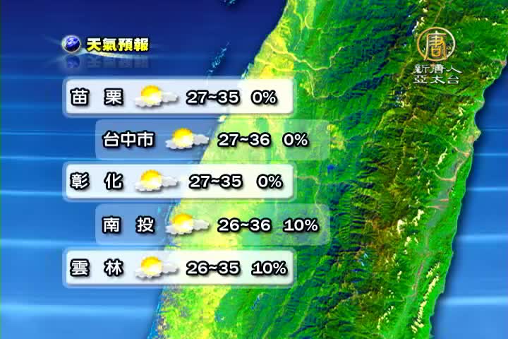 【新唐人亞太台 2016 年 07 月 21 日訊】接著帶您來看到7月22日的天氣預報。