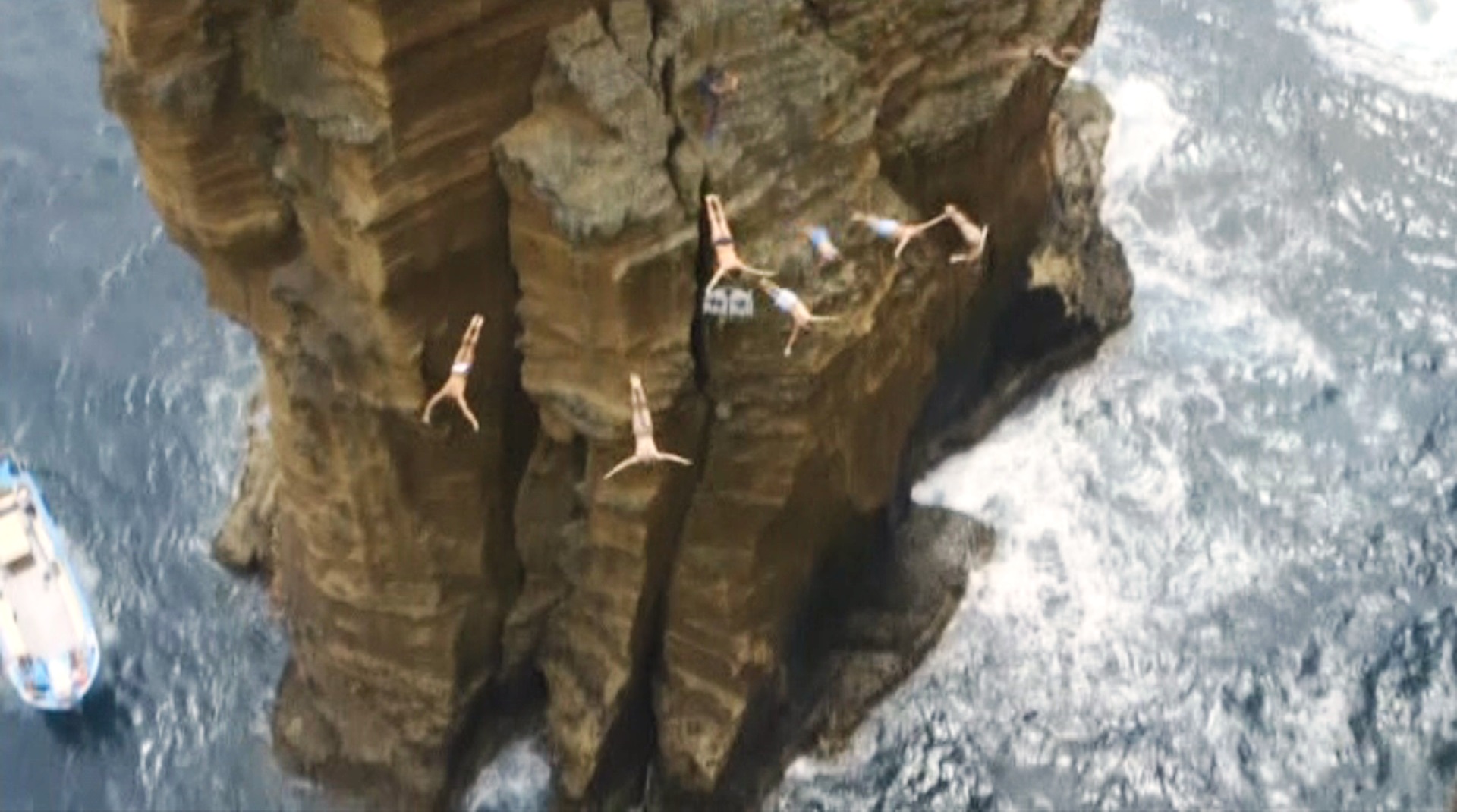 【新唐人亞太台 2016 年 07 月 22 日訊】來到風景優美的葡萄牙聖米格爾島,站在懸崖旁邊,紅牛跳水大賽的選手從10層樓高的懸崖跳下去,今年的第三場賽事,由英國跳水好手獲得冠軍。