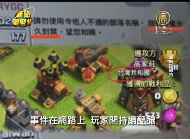 【新唐人亞太台 2016 年 07 月 23 日訊】中國網路公司騰訊,變成芬蘭遊戲商 Supercell的最大股東,已經震驚不少遊戲、與網路產業人士。不過,更令人震驚的,還有這一樁,那就是:台灣玩家成立的部落「台灣共和國」,被改名為「美麗的台灣」,原因是,「台灣共和國」這個名稱,「令人不悅」以及「造成遊戲不和諧」。這不只引起台灣玩家的不滿,也再次讓外界關注,中國近年大力發展遊戲產業的背後,還有哪些,不為人知的原因。