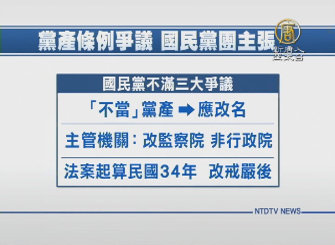 國民黨不滿的三大爭議,包括法案名稱以「不當」兩字形容黨產,要求更改法案名稱,另外還有主管機關的部分,國民黨要求應該設立在監察院底下,而不是行政院,最後就是法案起算年限為民國34年,國民黨立委認為針對性太強,應該改解嚴之後,不過在表決時全部都被民進黨否決。民進黨立委 吳秉睿:「國民黨委員不要老是把抄家滅族掛嘴上,第一個也沒抄家,第二也沒滅族,而且還很寬宏大量的是,所有法律規定可以用的錢還可以繼續用。」