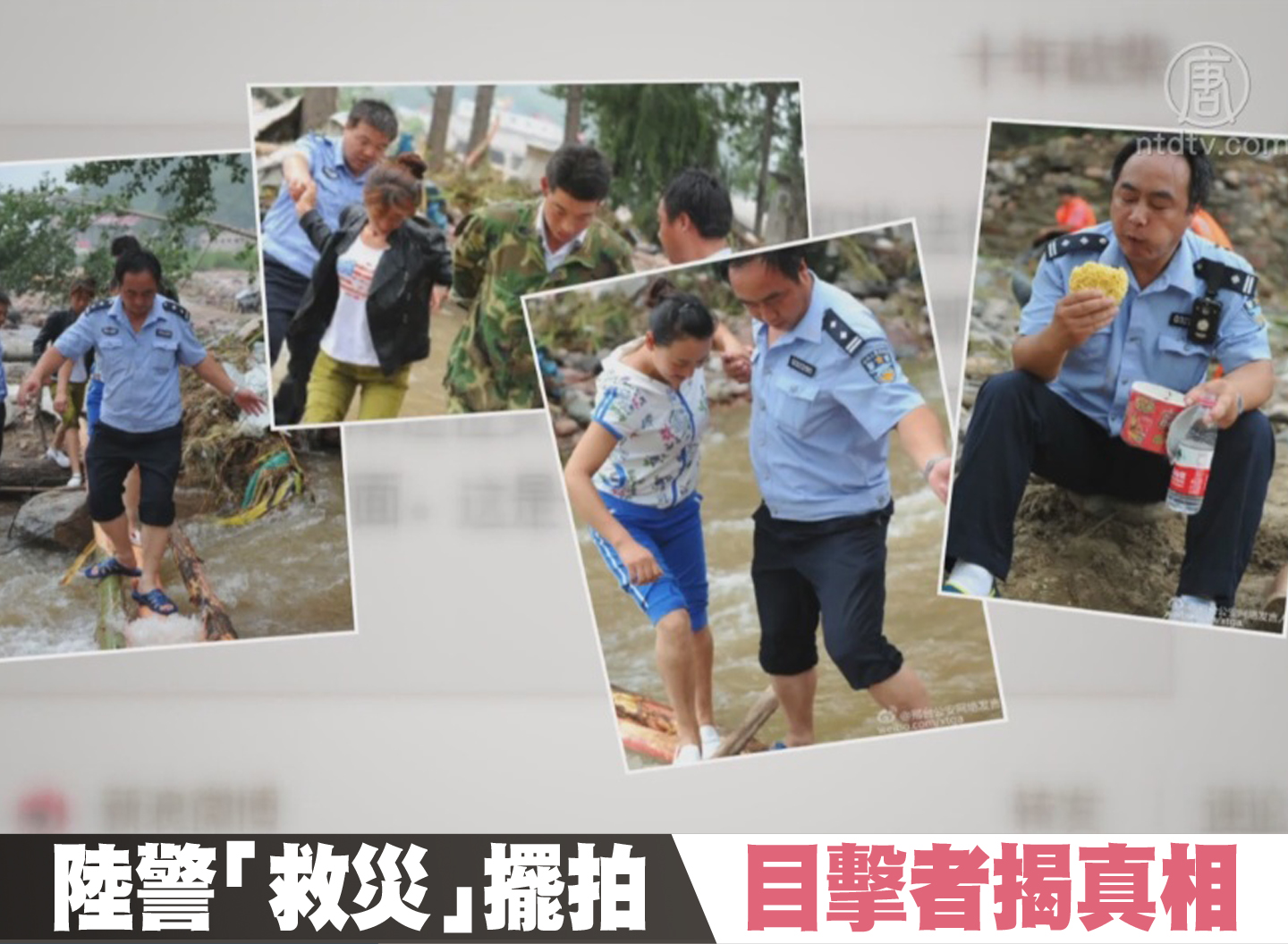 【新唐人亞太台 2016 年 07 月 26 日訊】中國多地最近連日暴雨,洪水肆虐,災民死傷慘重。但中共警方卻藉機在微博宣傳在救災現場的擺拍圖片,被目擊者在網絡揭穿。