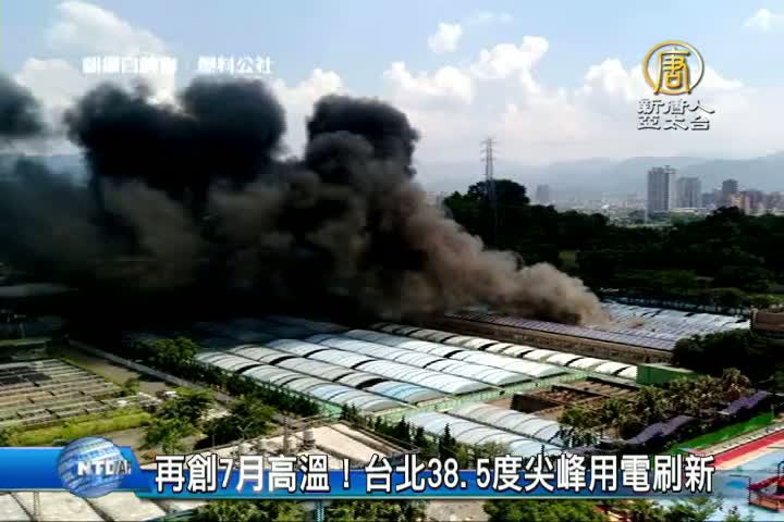 【新唐人亞太台 2016 年 07 月 27 日訊】今天真的好熱,台北下午1點左右出現了38.5度的高溫,再創今年7月以來高溫,也是台北史上7月份第2高溫紀錄。今天全台用電量也再創新高,尖峰用電量在今下午飆到3582.1萬千瓦,打破歷年用電紀錄,可能是因為實在太熱,台北市自來水園區的太陽能板下午2點左右疑似自燃,現場不斷冒出濃煙,緊急疏散將近1200人,火勢在下午2點半左右就撲滅,沒有造成人員傷亡,消防局表示,確界起火原因 還有待進一步調查。