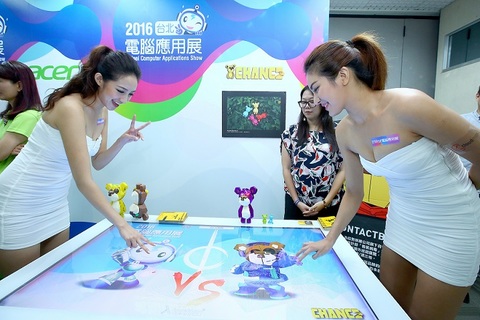 【圖說】2016年台北電腦應用展現場展示各種互動裝置,適合親子共同體驗。