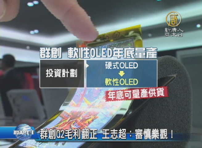 群創高層透露,OLED的投資計劃上,從硬式OLED(Rigid OLED)轉往軟性OLED(Flexible OLED)發展,並預期年底可量產供貨,除此之外,群創日前也與挪威大廠NEXT Biometrics ASA,共同量產全球第一個,熱感應可撓式指紋傳感器,切入資安領域。