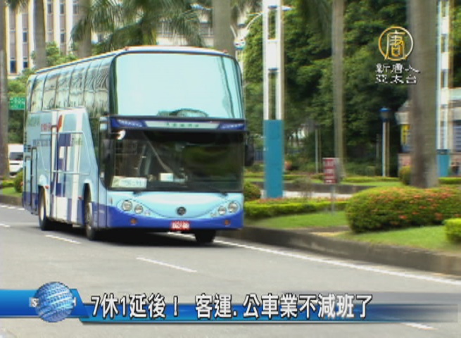 【新唐人亞太台 2016 年 07 月 31 日訊】行政院昨晚(30日)宣布「7休1」政策,延後2個月,如此一來客運和公車業者不必減班,甚至中秋節還會增加班次,協助民眾返鄉疏運。