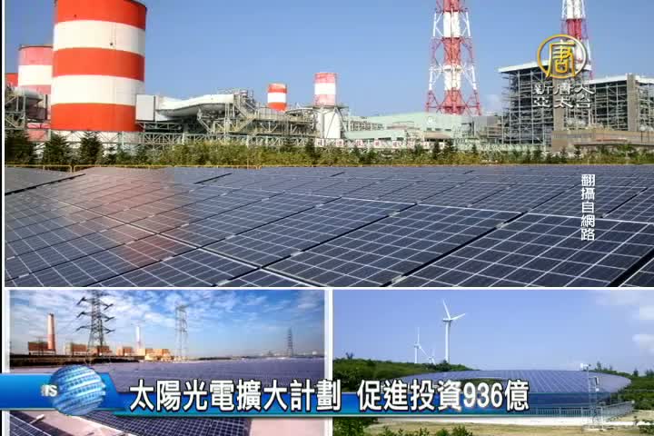 【新唐人亞太台 2016 年 08 月 01 日訊】再來看到,為了促進國內投資,行政院鎖定綠能點火。媒體報導,行政院近期內將核定「太陽光電二年擴大計畫」,從鹽灘地、嚴重地層下陷區、水庫、學校政府機關用地、用電大戶等五路並進,一直到107年上半年,希望促進投資至少936億元,今年立即啟動。