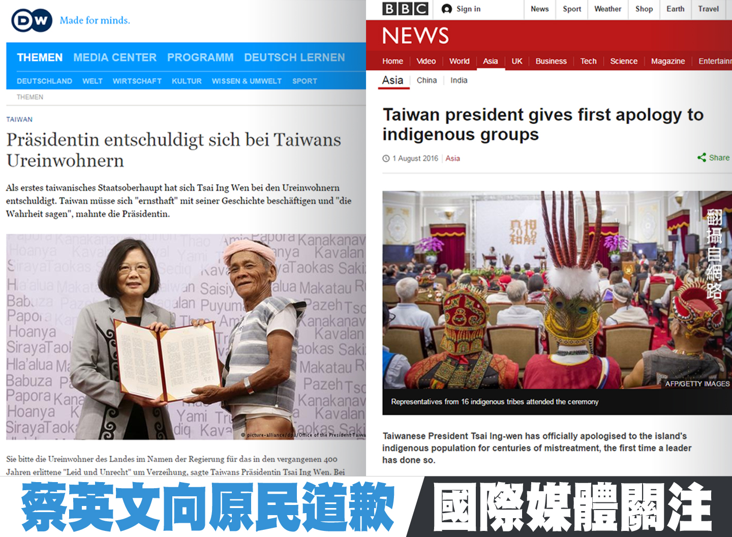 蔡英文向原民道歉 國際媒體關注