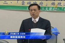 2013-12-27 21:47:57北市府傳出美河市開發弊案,涉及百億利益,目前已經有兩位官員遭聲押;立委許添財今天召開記者會,他拿出自己過去台南市長經驗,表示對於重大工程問題,首長必須站出來主導善後;有意參選北市的他直言,目前市府的問題就是,決策不透明,溝通失效。