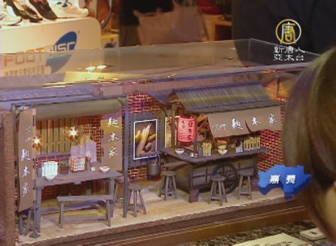 20多幅作品,珍藏著幾乎不可見的小物與回憶,像是0.1公分堆疊出來的古樸雜糧行,有各式南北貨、店面與招牌;早年廟口前的小麵攤,道地的擔仔麵、古早味肉羹,帶民眾走進童年時光。